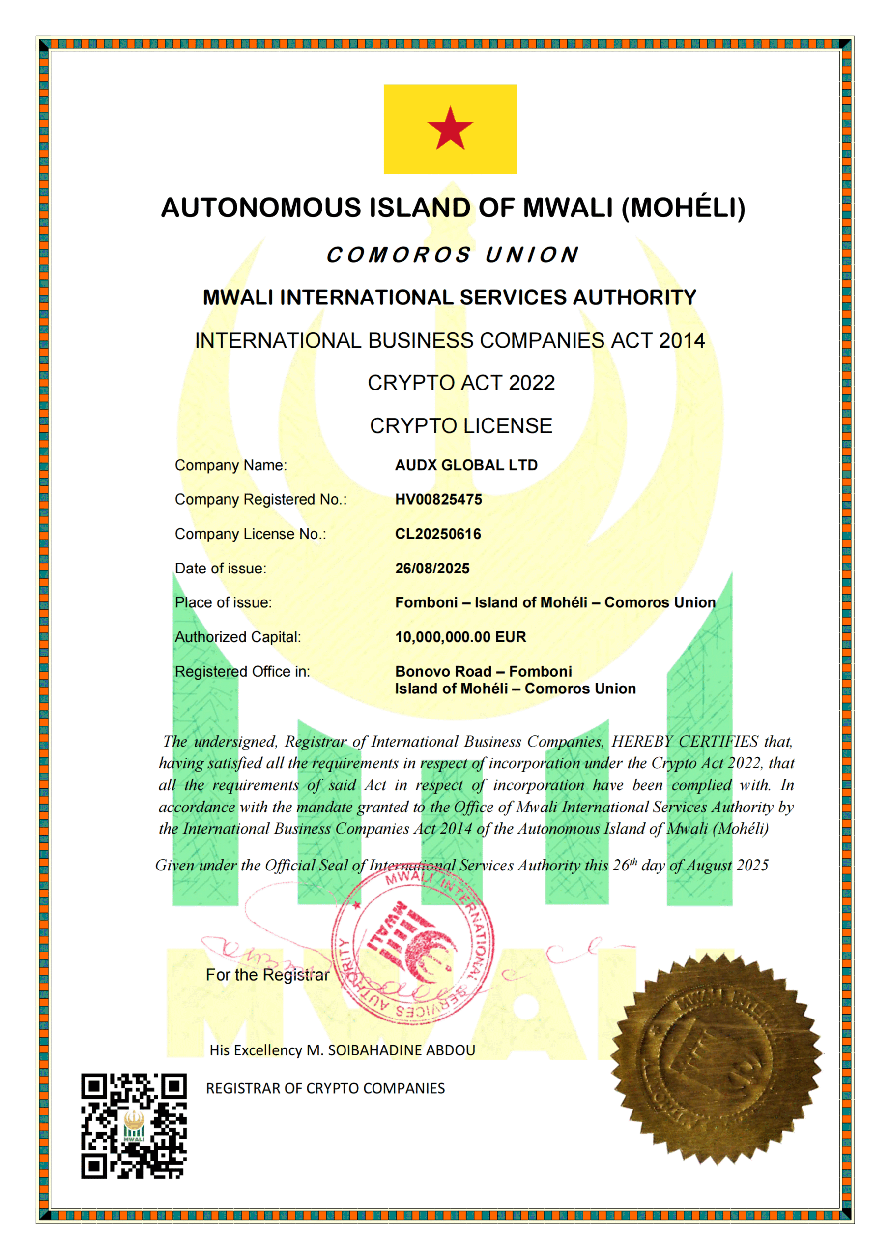 科摩罗·莫埃利(Mwali)加密业务牌照